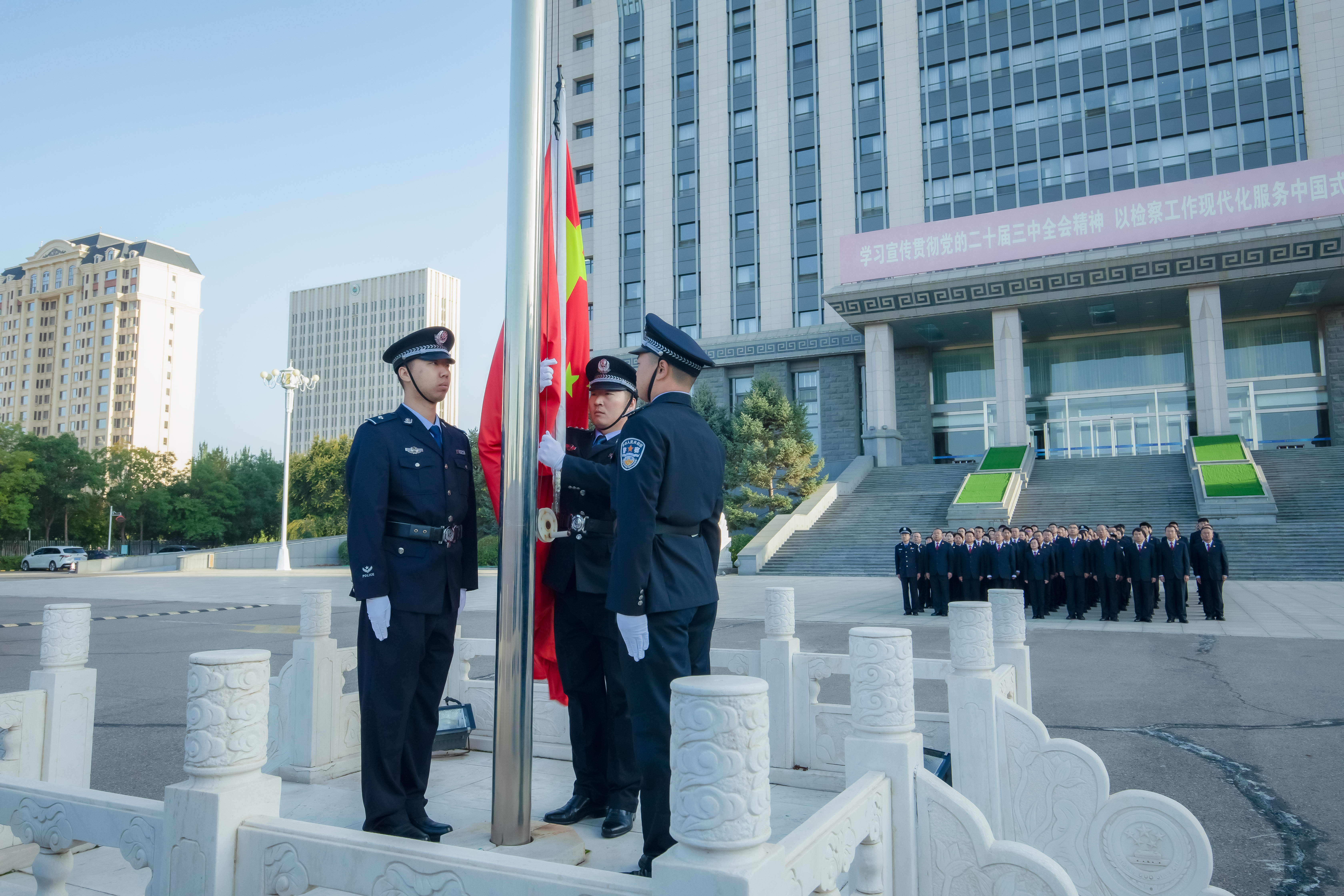 “向国旗——敬礼!”上午8时的包头市检察院广场,全体检察人员身着笔挺的检察制服,列成整齐方阵肃立。当国歌旋律响起,五星红旗缓缓升至杆顶,全体检察人员齐声高唱国歌,目光紧紧追随飘扬的红旗——这不仅是对祖国的礼赞,更是一次“身份再确认”,作为法律监督者,胸前的检徽与头顶的国旗同色,这份“红色使命”既要刻在心里,更要体现在每一次办案、每一次监督中。参与仪式的检察人员表示,升国旗时的肃穆感,让自己更清晰地意识到“集体荣誉”不是口号,而是办好每一起案件,守护每一份公平正义的责任。