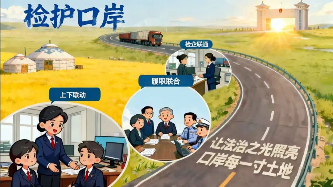 达茂旗地处祖国北疆,与蒙古国接壤,这座扼守中蒙边境、守护满都拉口岸、88.6公里边境线的北疆小城,每一寸土地都连着国门安全。达茂旗检察院立足边境旗县的特殊实际,将口岸检察打造成亮点品牌,创新推出“上下联动、履职联合、检企联通”的“三联”工作法,让检察力量扎根口岸、护航高水平对外开放。 边境沃土之上,检察热血之情,达茂旗检察院以同心为丝、协作为缕,于层级与部门之间,织就合力锦缎。纵向贯通三级检察力量,在自治区院、包头市检察院、达茂旗委关怀支持下,达茂旗检察院在满都拉口岸服务中心设立“口岸检察协作办公室”,精准制定履职清单,让检察服务“驻”在口岸一线。横向拓展多元共治格局,创新推出“人大+政协+检察”机制,联合旗人大、政协出台《代表建议、政协提案与检察建议双向衔接转化办法》,挂牌成立“公益诉讼满都拉联络站”,累计转化代表委员线索3条,推动检察建议升级为政策提案3件,其中1件案事例被最高检、检察日报宣传报道。该做法在自治区涉外检察和沿边口岸检察工作情况中被通报表扬。达茂旗检察院与旗公安机关、法院、边防4家单位会签《服务保障口岸高质量发展协作配合机制》,以“一事一议、一事一办”的灵活方式,筑牢口岸安全防线。 达茂旗检察院将目光凝注于口岸关键之域,以检察人的坚守为盾、履职为光,在每一处关乎安宁的节点上,点亮平安之光。刑事检察方面,依法严厉打击涉沿边口岸地区组织他人偷越国(边)境、偷越国(边)境刑事犯罪案件2件5人。办理的无国籍人李某某组织他人偷越国边境案,将出庭公诉与听庭评议有机结合,一体推进依法惩治犯罪与促进边境治理,以检察建议为纽带,实现从“个案办理”到“类案治理”的跨越,提升打击妨害国边境管理犯罪质效。该案被评为第三届沿边口岸检察典型案例。民事行政检察方面,与旗边境管理大队召开“检警共建”边境矛盾纠纷多元调处体系优化座谈会。期间,检察人员以“线上+线下”模式融入苏木乡镇综治中心,成功化解张某与某建工公司在满都拉口岸园区项目施工中的劳务纠纷,让矛盾化解在口岸、解决在基层。公益诉讼检察方面,围绕农牧民生产生活和草原牧场保护问题,先后办理涉及草原相关案件34件,推动恢复草原1677.97亩;设立“生态恢复保证金账户”,建成并扩大“草原补植复绿基地”近2万亩。依法办理野生动物致害案,向旗林草局制发检察建议,促成启动野生动物致害保险;针对特色产业聚集,通过“知产联系点”加强对“达茂草原羊”等地理标志性品牌保护,守护群众舌尖安全。 ? 循着企业需求的脉络,在营商环境的画布上悉心雕琢,让服务的暖光精准落进每一个企业发展的期盼里。达茂旗检察院建立领导干部包联企业制度,开启助企“绿色通道”,依托“潘志荣工作室”深入满都拉口岸物流园区50余次,走访民营企业30余家,用“菜单式”普法、“零距离”答疑的方式,引导企业防范风险、维护权益。怀揣“主动走出去、积极亮身份”的赤诚初心,组建集双语普法、跨境纠纷调解、草场权益保护于一体的“马背检察官”流动服务队,联手护边员,把检察服务延伸到蒙古包旁、牧群沿线。为边境牧民提供法律咨询50余次,共发放宣传册1000余册,让法治成为口岸营商环境的“金字招牌”。