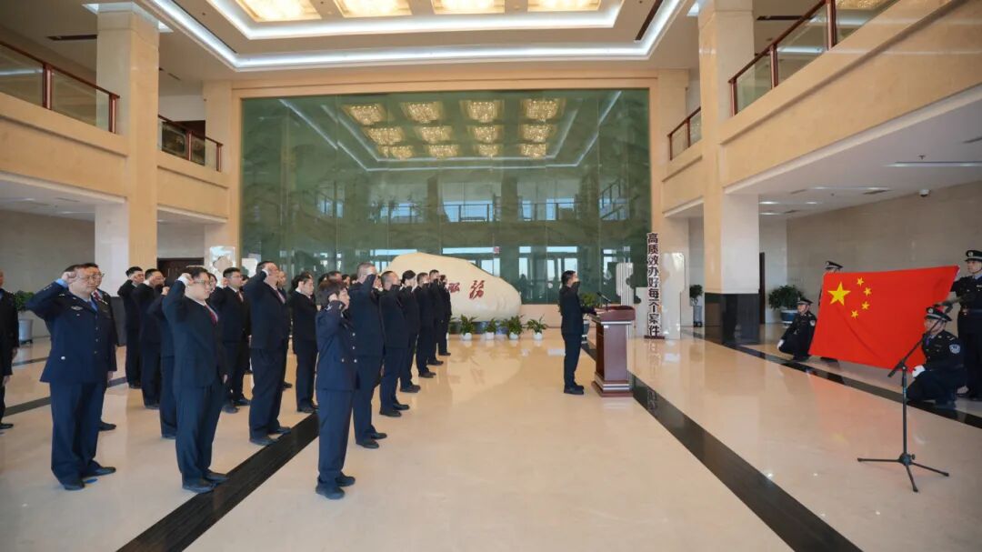 宣誓现场国歌嘹亮,气氛庄重。检察人员肃立面向国旗,高举右拳,以铿锵有力的誓言向党和人民、向宪法法律作出郑重承诺。誓言字字千钧,掷地有声,这既是全体检察人员向国家和人民做出的庄严承诺,也是每一位检察人员依法履职的责任和担当。