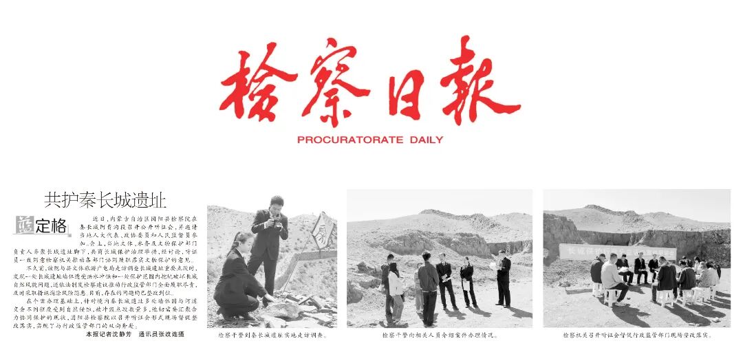 不久前,该院与县文体旅游广电局走访调查长城遗址重要点段时,发现一处长城遗址墙体遭受洪水冲蚀和一处保护范围内挖坑破坏长城自然风貌问题,遂依法制发检察建议推动行政监管部门全面履职尽责,及时采取措施消除风险隐患。目前,存在的问题均已整改到位。