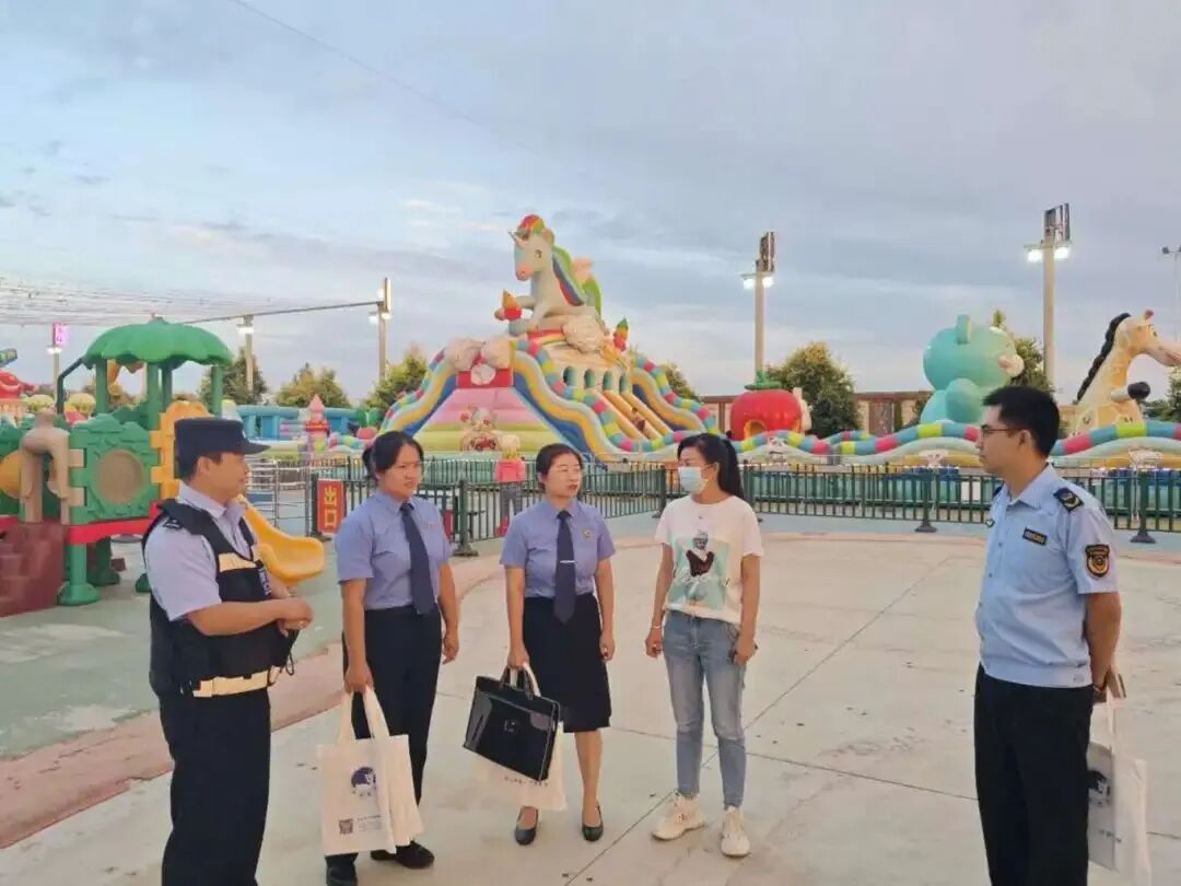 近日,九原区检察院以“少年儿童心向党、真情相伴护成长”为主题,联合区公安分局、区市场监督管理局、区应急管理局,对辖区赛汗塔拉城中草原内、万达广场门前儿童娱乐设施开展安全隐患专项排查工作,合力做好暑期儿童关爱工作。