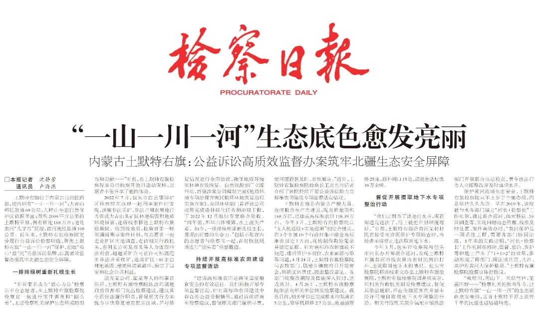 “敕勒川,阴山下。天似穹庐,笼盖四野……”检察机关的担当作为,让土默特右旗“一山一川一河”的生态底色愈发亮丽,这首土默特平原上流传千年的民谣也越唱越响亮。