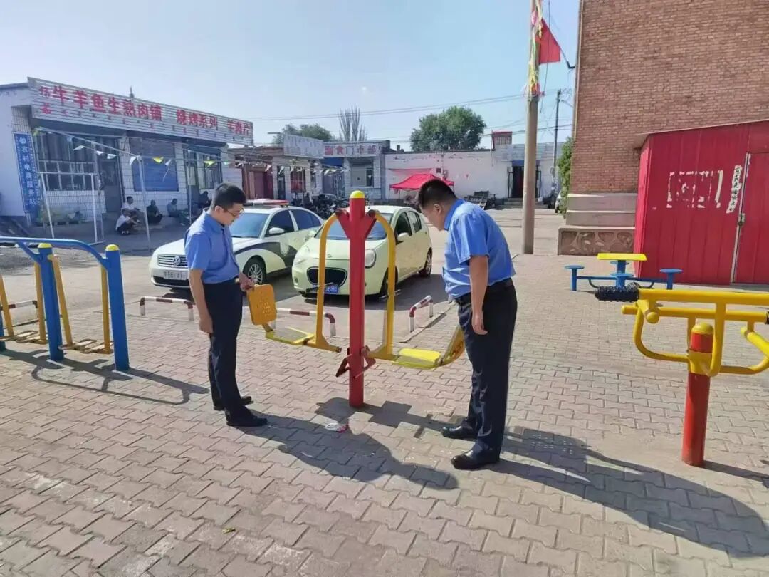 2023年9月,土默特右旗检察院公益诉讼检察官对室外公共健身器材使用管护情况进行全面排查。