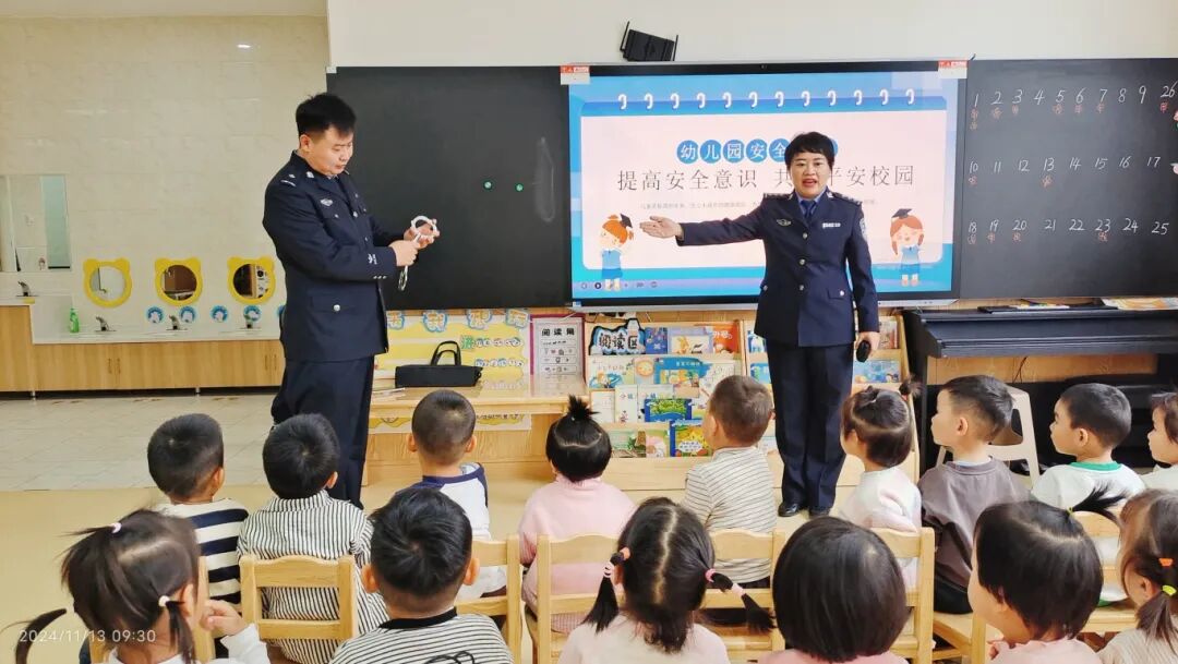 活动中,司法警察以幼儿园安全教育为主题,精心准备了丰富的宣传材料,通过播放动画片、现场讲解和互动等形式,用通俗易懂的语言向师生们普及了交通出行安全、食品用水安全、疾病预防防控、预防拐骗等安全常识。随后还向孩子们展示了强光手电、手铐、执法记录仪等警械具,并讲解了具体功能和使用方法。小朋友们纷纷踊跃参与现场互动,现场氛围热烈。